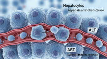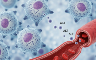 간수치가 올라간다는 것은 단순히 숫자가 높아졌다는 의미를 넘어, 간세포에 자극이나 손상이 발생하고 있다는 신호를 뜻합니다. 간세포 안에는 여러 효소가 존재하는데, 이 세포가 손상되면 효소가 혈액으로 유출되면서 검사 수치가 상승하게 됩니다.