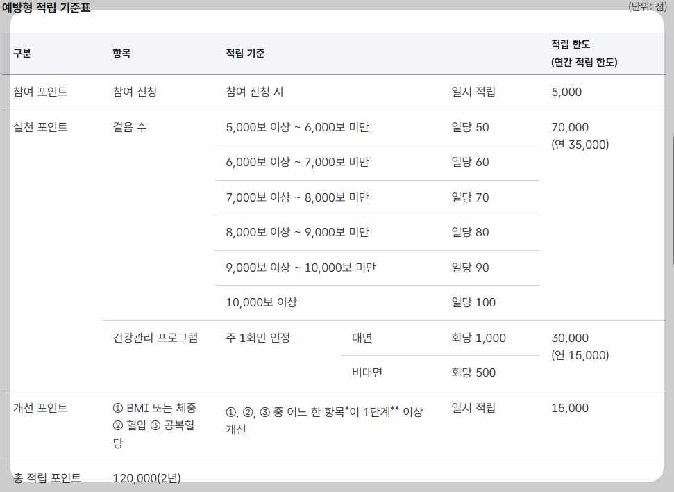 3) 예방형 2년 최대 12만 점, 관리형 1년 최대 8만 점 적립 가능