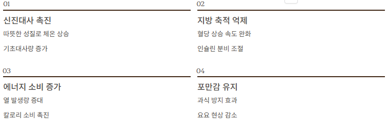 - 기초대사량 증가로 에너지 소비 촉진