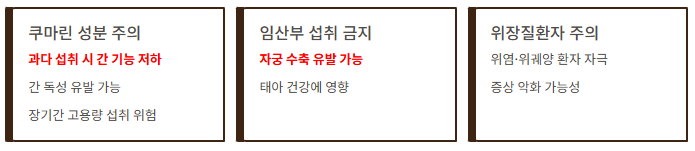 - 임산부·위장질환자 섭취 금지