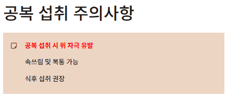 - 공복 섭취 시 속쓰림 등 자극 가능