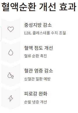 - 혈액 점도 개선으로 혈류 순환 촉진