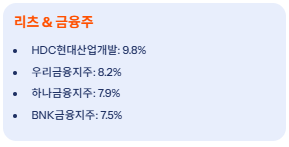 - 단, 특정 산업에 집중하지 않고 금융·리츠·소비재 등 분산 필요