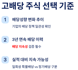 결론적으로, 고배당 종목 투자 시에는 단순히 ‘배당률 수치’만 볼 것이 아니라