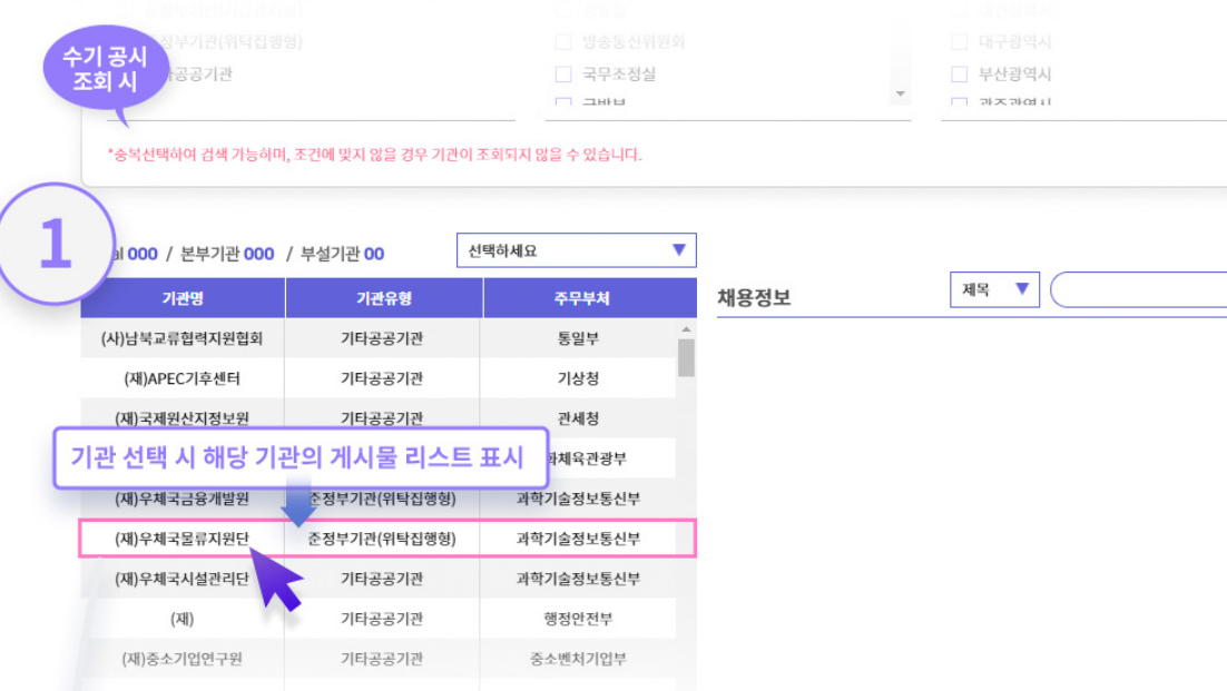 공공기관의 채용정보는 물론, 기관의 조직현황, 재무상태, 복리후생까지 다양한 항목이 연 2회 이상 공시됩니다.