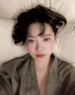 사진 속 구혜선은 자연스럽게 머리에 납작한 헤어롤을 착용한 모습으로 등장하며, 기존 둥근 헤어롤과는 확연히 다른 구조를 보여주었습니다.