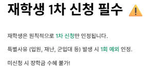 - 재학생은 1차 신청이 원칙