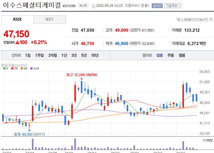 이수스페셜티케미컬 - 네이버페이 증권 : 네이버페이 증권