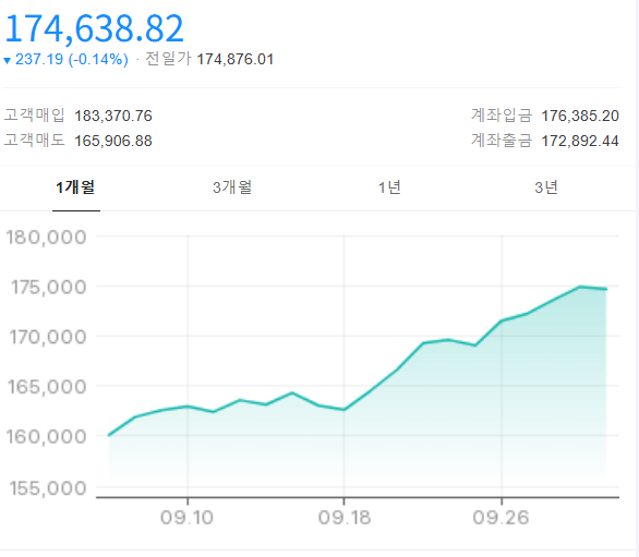 · 국제 기준: 약 $3,871.93/oz, 국내 g 단가 174,280원