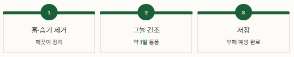 - 수확 후 그늘 건조로 저장성 향상