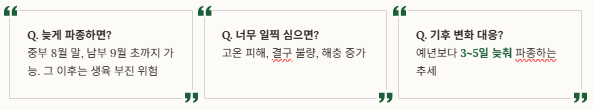 만약 늦게 파종해야 한다면 초기 보온과 관수를 강화해 생육 속도를 높이는 것이 좋습니다.