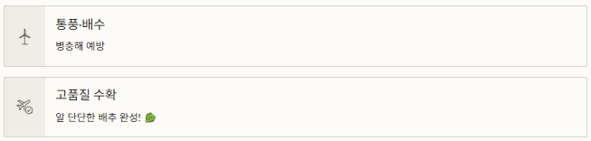 이 시기에는 병충해가 잎 속까지 번지기 전에 유기농 자재나 석회보르도액을 주기적으로 살포하는 것이 좋습니다.