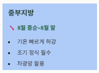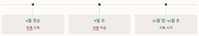 - 전국 공통 적정 시기: 8월 중순~9월 초