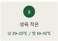 - 생육 적온: 낮 20~25℃ / 밤 10~15℃