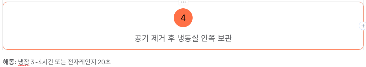 해동은 상온보다는 냉장고에서 3~4시간 천천히 진행하는 것이 가장 안전합니다. 빠르게 사용할 경우에는 전자레인지로 20초 내외만 짧게 돌려 부분 해동한 뒤 조리에 사용하는 것도 좋습니다. 완전 해동보다 반해동 상태에서 조리하면 식감이 살아있습니다.