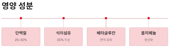 - 베타글루칸, 폴리페놀 풍부
