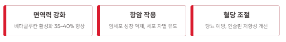 - 면역 강화·항암·혈당 조절 효과