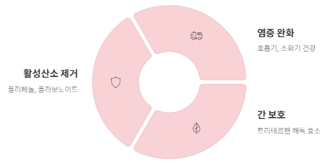 - 폴리페놀 → 활성산소 제거 및 염증 완화