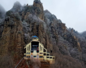 절정기에는 붉은 단풍이 절벽을 물들이지만, 지금은 갈색 낙엽과 겨울로 넘어가는 산빛이 어우러져 정취가 깊습니다.