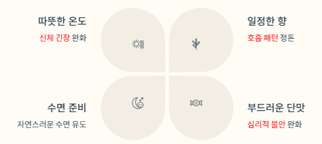 - 일정한 향 성분 → 호흡 패턴 정돈