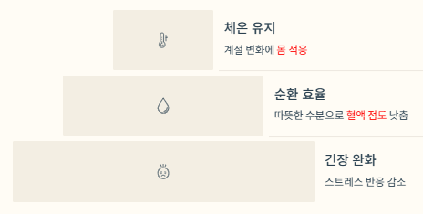 - 따뜻한 수분 공급 → 혈액 점도 낮아짐 → 순환 효율 상승