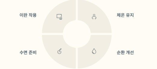 온열·순환 작용 때문에 몸의 반응이 부드러워질 수 있으나 치료 개념은 아닙니다.