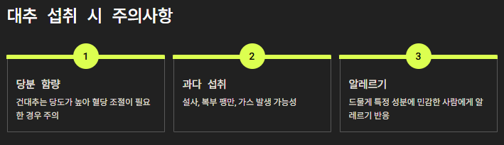 - 말린 대추는 생대추보다 당 농축이 높아 주의