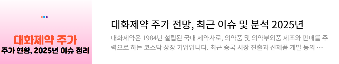 👉 과거 대화제약 주가 전망이 궁금하다면 [이전 글 보기]