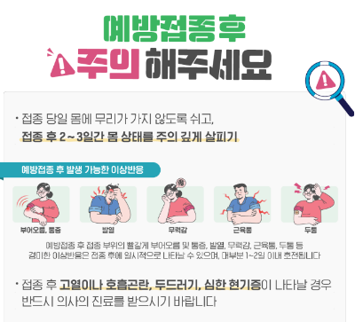 독감 예방 접종 후에는 다음과 같은 사항에 유의해야 합니다.