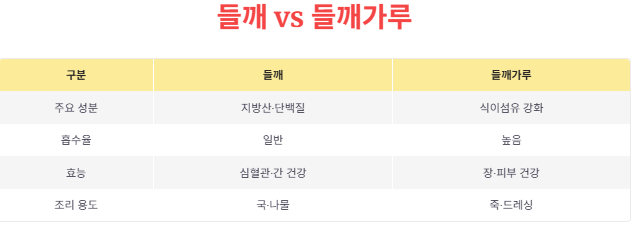 A1. 비슷하지만 다릅니다. 들깨는 지방산과 단백질 중심으로 심혈관·간 건강에 좋고, 들깨가루는 흡수율이 높아 장·피부 건강에 더 효과적입니다.