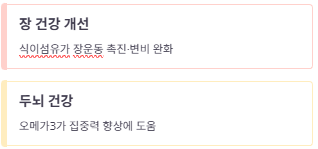 4) 두뇌 건강 유지: 오메가3 지방산이 뇌 기능 유지와 집중력 향상에 도움.