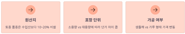 - 1kg 단위라도 판매처·품질에 따라 20,000원 이상 차이 존재