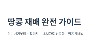 땅콩 재배는 생각보다 어렵지 않지만, 땅콩 심는시기와 재배방법을 정확히 이해하는 것이 가장 중요합니다. 적절한 시기와 기본 관리만 지켜도 누구나 안정적인 수확이 가능합니다.