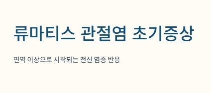 이러한 증상은 면역계가 지속적으로 활성화되면서 몸 전체에 염증 반응이 퍼지기 때문에 발생합니다. 관절 통증이 심하지 않더라도 전신 증상이 함께 나타난다면 류마티스 관절염 초기 가능성을 염두에 두는 것이 필요합니다.