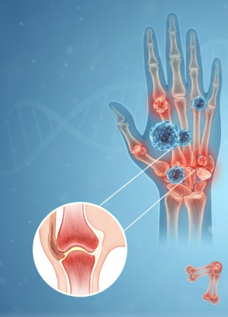 류마티스 관절염은 관절을 많이 써서 생기는 병이 아니라, 면역체계 이상으로 발생하는 만성 염증 질환입니다. 우리 몸을 보호해야 할 면역세포가 관절 내부를 공격하면서 염증이 지속적으로 생기고, 이로 인해 관절 구조가 점차 손상됩니다.