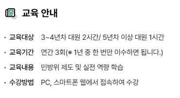 ※ 지자체별로 교육 방식(사이버 또는 집합)이 다를 수 있으므로, 반드시 해당 지자체 공지사항을 확인해야 합니다.