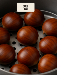 찌는 시간은 밤 크기에 따라 달라집니다. 작은 밤은 20분, 큰 밤은 25~30분이 적당합니다.