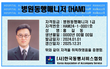즉, 이 자격증은 단순한 수료증 이상의 의미를 가지며, 병원 동행 매니저로서의 신뢰도와 전문성을 확보하는 데 매우 중요한 기반이 됩니다.