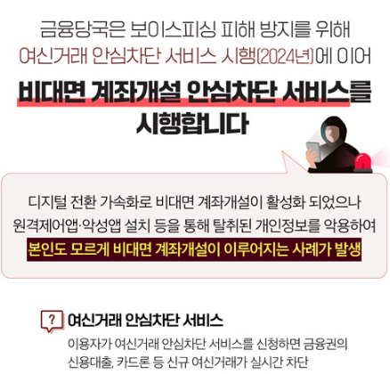 나도 모르게 개설된 계좌 알림에 깜짝 놀라셨죠? 점점 교묘해지는 보이스피싱 등 금융범죄. 이제는 걱정 NO! 비대면 계좌개설을 한 번에 차단하는 방법, 지금 영상에서 확인하세요. - 정책브리핑
