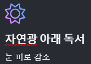 • 자연광 아래에서 독서하기: 어두운 환경에서 작은 글씨를 오랫동안 보면 눈의 피로도가 증가할 수 있습니다.