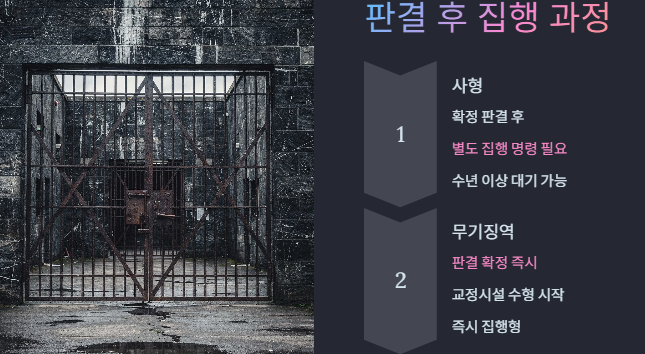 - 사형: 확정 판결 이후에도 집행 명령과 행정 절차가 필요