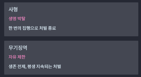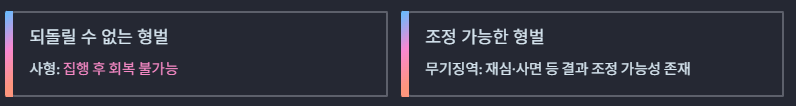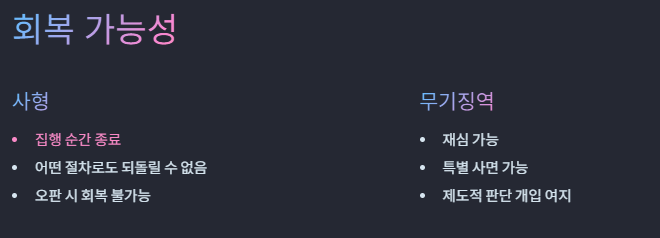 - 사형: 집행 이후 결과를 되돌릴 수 없음