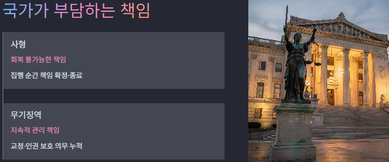 - 사형: 집행 순간 국가 책임이 확정되고 종료됨