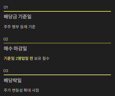 - 배당금 기준일 : 주주 명부에 등재되는 기준 날짜