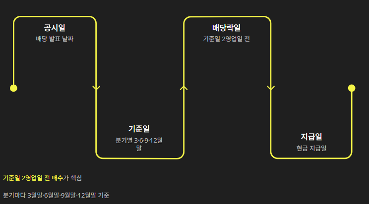 많은 분들이 배당을 받을 수 있는 시점을 단순히 “배당 발표일”이나 “배당 지급일”로 오해하는 경우가 많지만, 실제로 가장 중요한 것은 기준일입니다. 기준일 하루라도 주식을 보유하지 않고 있다면, 아무리 배당 규모가 커도 배당금을 받을 수 없습니다.