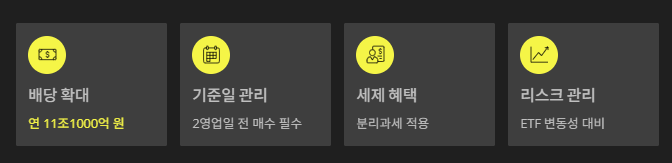 이런 환경에서 배당 투자 전략도 달라질 필요가 있습니다. 단순히 배당 수익률만 보고 접근하기보다는, 실적 발표 일정, 배당 기준일, 배당락일, ETF 출시 일정까지 함께 고려해야 합니다. 특히 레버리지 ETF가 본격 도입되면, 단기 변동성이 커질 가능성이 높기 때문에 배당 목적 투자자라도 매수 타이밍과 가격 변동 리스크를 함께 관리해야 합니다.
