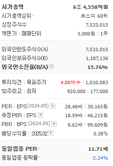- 주가: 859,000원 (전일 대비 -2.83%)
