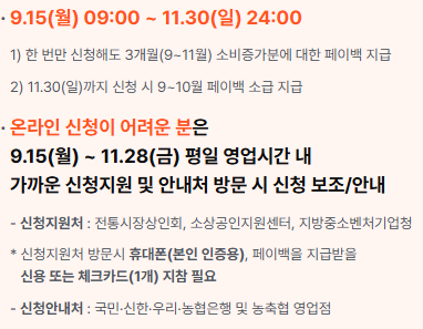 5) 신청 기간: 2025년 9월 15일 오전 9시 ~ 11월 30일 자정까지 상생페이백 공식 누리집에서 신청 가능