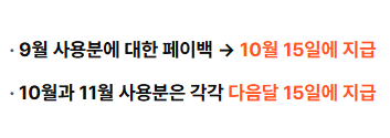 - 10월 사용분 환급: 11월 15일 이후 지급