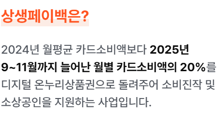 상생페이백은 정부가 시행 중인 소비 활성화 환급 프로그램으로, 소상공인 매장에서 카드 사용을 늘린 국민에게 일정 금액을 환급해주는 제도입니다.